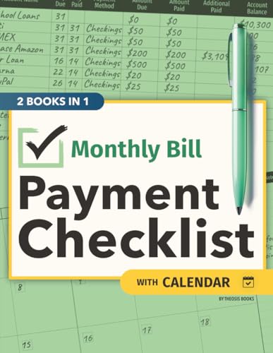 Monthly Bill Payment Checklist with Calendar: Multi-Year 110+ Pages 8.5 x 11 Tracker Monthly Organizer