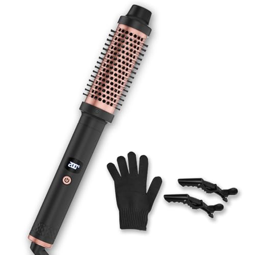 Terviiix Thermal Brush Keramisk turmalinlocktång med borste, 38 mm Volymgivande varmborste för rotvolym och lösa lockar. Digital temperaturdisplay (5 inställningar), dubbelspänningsfunktion