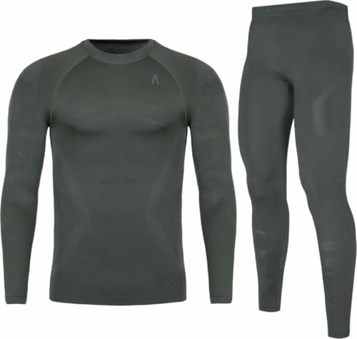 MEETWEE Termiska underkläder för herr, vinter baslager kompressionsset långärmad tröja och skidbyxor löpning träning vandring, Färg: grå, XL
