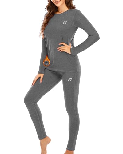 MeetHoo Termiska underkläder för kvinnor, vintervarma baslager kompressionsset, fleecefodrade Long Johns löpning skidåkning, Grå02, L