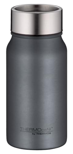 THERMOcafé av THERMOS TC DRINKING MUG grå mat 0,35 l, termosmugg rostfritt stål, isoleringskopp, kaffemugg to go, läckagesäker, varm i 8 timmar, kall i 16 timmar, diskmaskinssäker, BPA-fri
