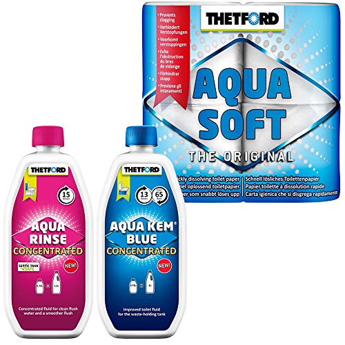 Thetford Set Camping WC Chemie Aqua KEM Blue Concentrat + Aqua Binkl Concentrated med toalettpapper aqua Soft