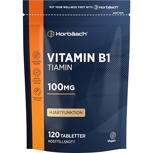 Vitamin B1 Thiamin 100mg | 120 Tabletter Veganska | Tiamin B1 | Kosttillskott Högt Doserat | Horbaach