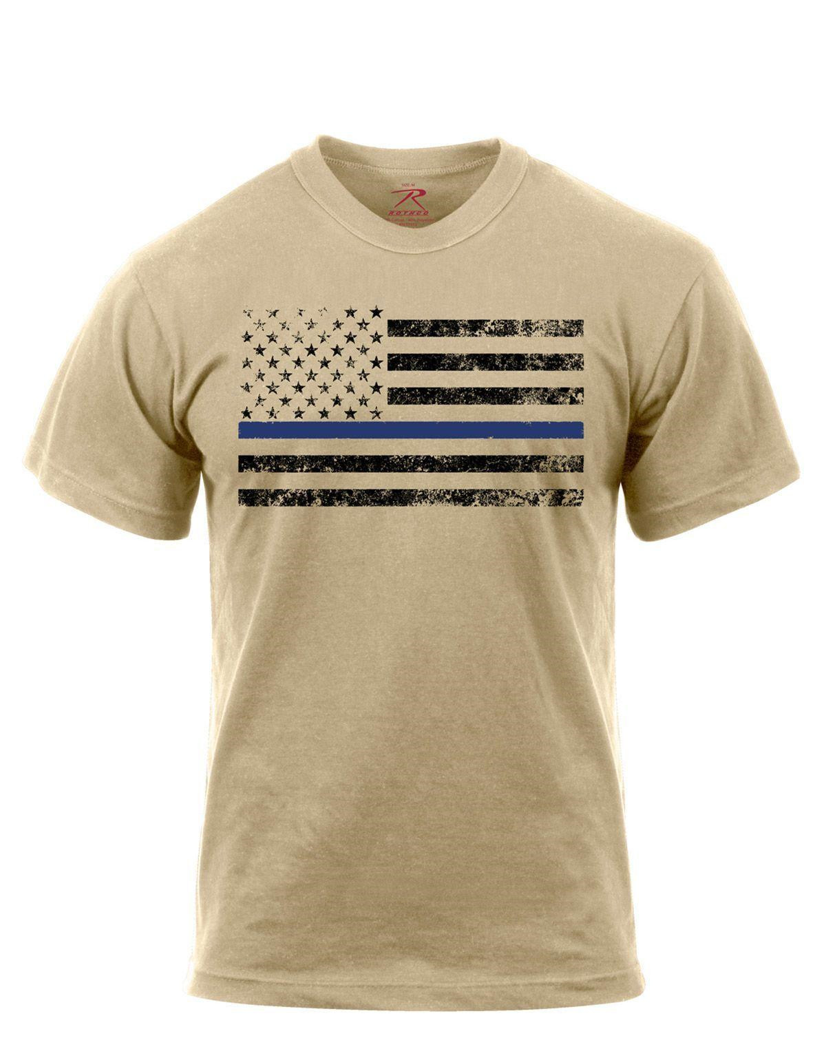 Rothco T-shirt - Thin Blue Line-Flag (Desert Sand m. Svart Flag, L) L Desert Flag