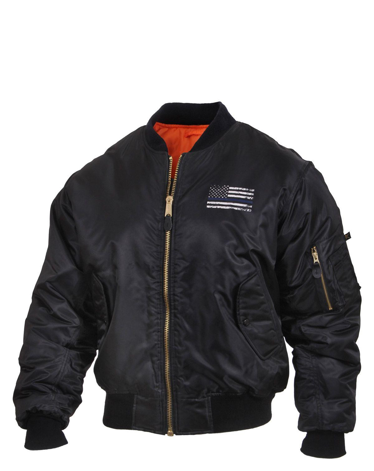 Rothco MA-1 Bomberjacka - 'Thin Blue Line' (Svart, XL) XL Svart