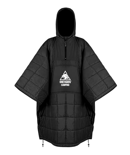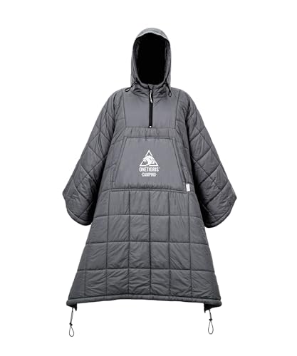 OneTigris camping poncho filt med 3 m Thinsulate isolering, vattentät filt varm, med stora fickor, bärbar filt med huva för utomhus, vandring, resor (grå)