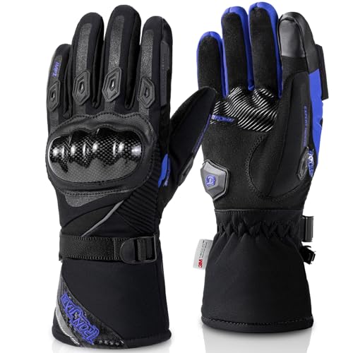 BORLENI Motorcykelhandskar för män, varma motorcykelhandskar med 3M Thinsulate, vattentäta vindtäta med pekskärm och knoggskydd i kolfiber, storlekar blå-XXL