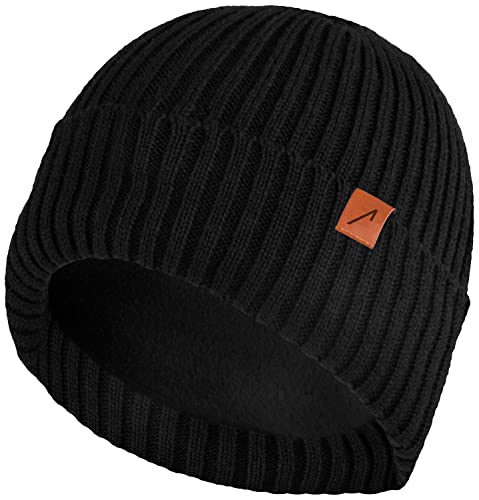 ACE-vintermössa - Stickad mössa med 3M Thinsulate-foder för vuxna - mjuk, varm och bekväm - Svart