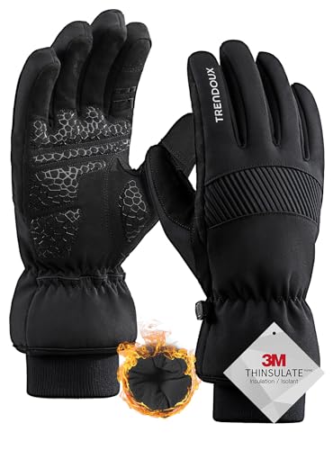 Trendoux Handskar för män och kvinnor, vattentäta, med 3M Thinsulate, pekskärmskompatibla, för cykel, snowboard, snölöpning, vinterhandskar, svarta, storlek XL