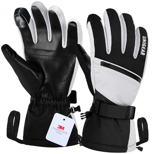 Unigear Vattentäta skidhandskar, 3M Thinsulate snowboardhandskar, pekskärm halkskydd unisex vinterhandskar för utomhussport