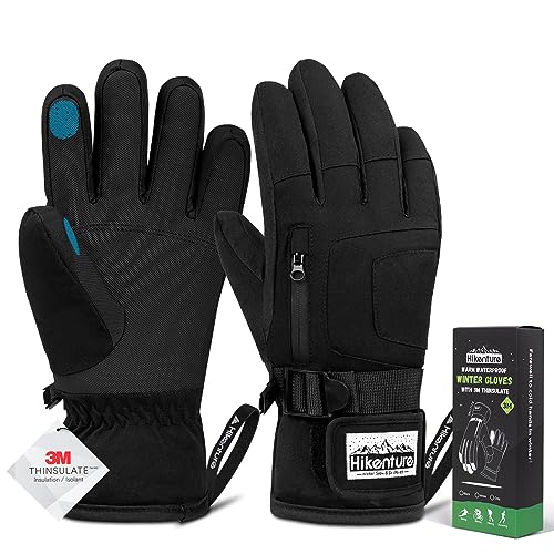 HIKENTURE Vinterhandskar män kvinnor, 3M Thinsulate skidhandskar, vattentäta handskar vinter varma, vindtäta pekskärm snowboardhandskar för skidåkning, cykling, motorcykel, löpning svart-M