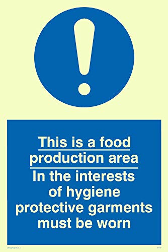 Viking Signs MH197-A6P-PV "This Is A Food Production Area In The Interests Of Hygiene Skyddande plagg Must Be Worn" skylt, klistermärke, fotobelysning, 150 mm H x 100 mm B
