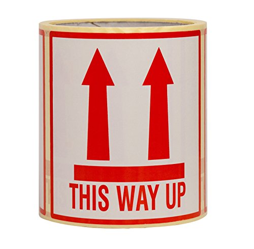 OliveBird 100 This Way Up-klistermärken stor storlek 10 x 10 cm självhäftande etiketter med permanent smältlim (100)