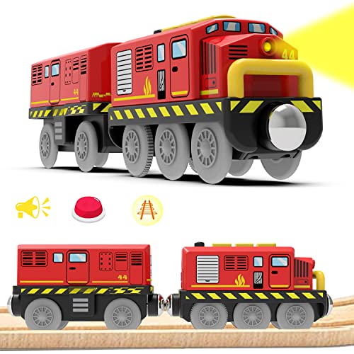 TOPLIVING Motoriserat tåg för träskenor, fjärrstyrt tåg med magnetisk anslutning, batteridriven lokomotivtåg för småbarn, kompatibelt med Thomas, Brio, Chuggington