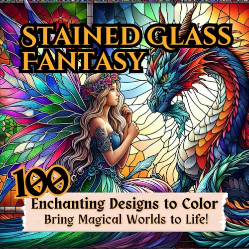 Stained Glass Fantasy Coloring Book. 100 Enchanting Designs to Color Bring Magical Worlds to Life!: A large-format coloring book with 100 stained ... bleed-through. Perfect for fantasy lovers