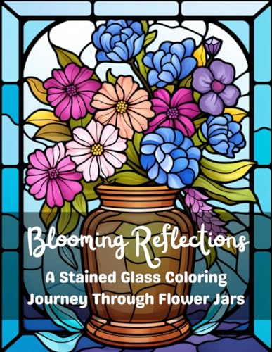 Blooming Reflections: A Stained Glass Coloring Journey Through Flower Jars for Adults, 50 Unique Designs