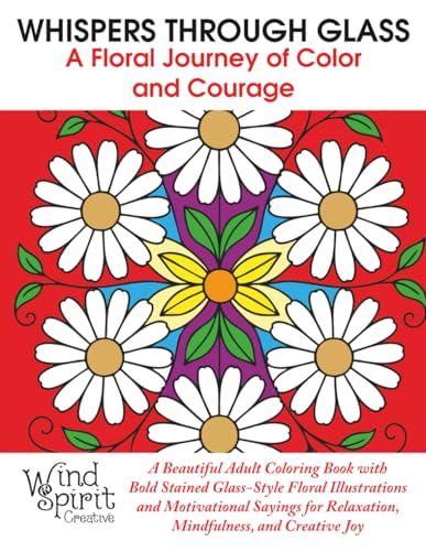 WHISPERS THROUGH GLASS A Floral Journey of Color and Courage: A Beautiful Adult Coloring Book with Bold Stained Glass-Style Floral Illustrations and ... for Relaxation, Mindfulness, and Creative Joy