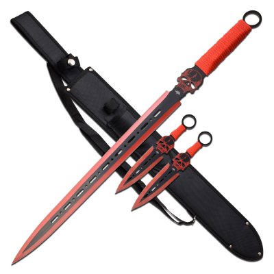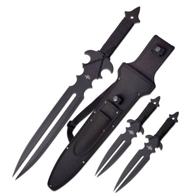 Master Cutlery Fantasy Master - Fantasy Sword with 2 Throwing Knives Cord Wraped