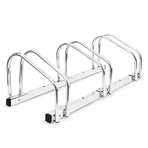 Relaxdays cykelställ, för 3 cyklar, vägg- och golvmonterad, cykelhållare, förkromat stål, utomhus, silver