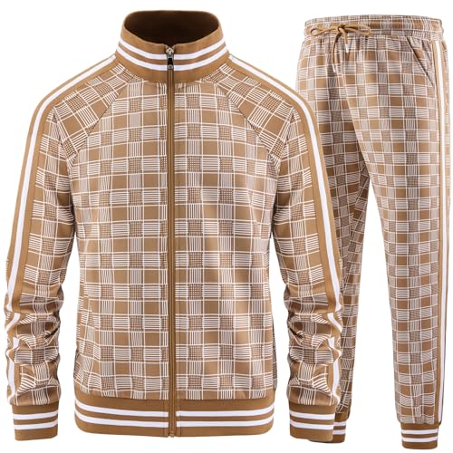 LBL Leading the Better Life träningsdräkt för män 2-delad outfit vardaglig kontrast sport jogging träningsoveraller set, Khaki, XL