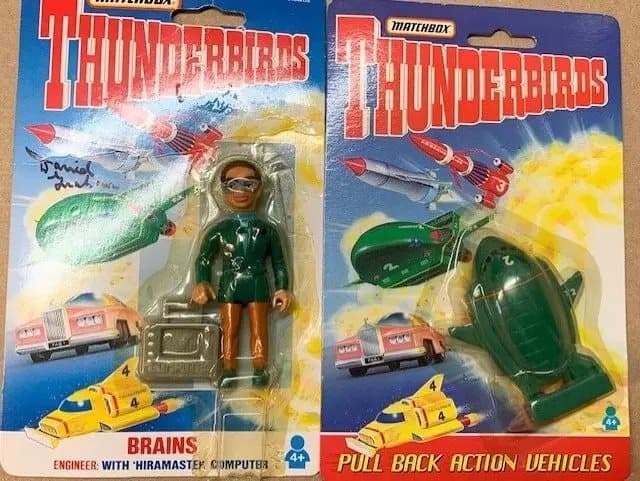 Matchbox THUNDERBIRDS BRAINS Figure ( Signed ) and Thunderbirds 2 Model