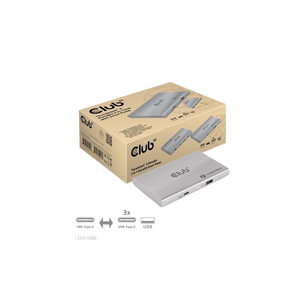 Club 3D Thunderbolt 4 Portable 5-in-1 Hub with Smart Power - dockningsstation - Thunderbolt 4