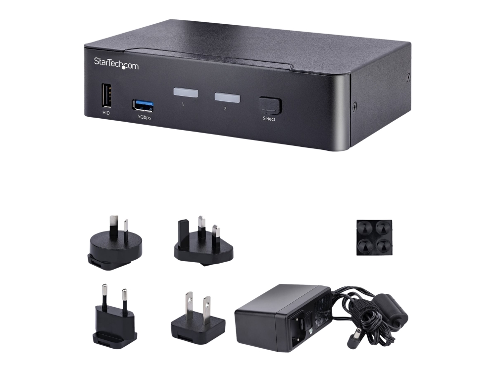 Startech.Com Usb C Kvm Switch, 2 Port Displayport Kvm W/ 4K 60Hz Uhd Hdr Video, 3.5Mm Audio, Usb Type C Kvm Switch, 4X Usb Hid And 2X Usb A 3.2 Gen 1 5Gbps Hub, Thunderbolt 3/4 Compatible - Hot Key Switching (Sv231dpuca) - Omkopplare För Tangentbord