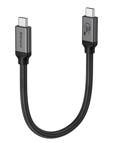 Silkland USB 4 Kabel för Thunderbolt 4 Kabel Kort 30CM, 40Gbps Datasynkronisering, 8K@60Hz, Dual 4K, PD3.1 240W 48V/5A, USB C to USB C för MacBook Pro, SSD, Docking, eGPU, Monitor