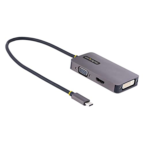 Startech.Com Usb C Video Adapter, Usb C To Hdmi Dvi Vga Adapter, Up To 4K 60Hz, Aluminum, Multiport Video Display Adapter For Laptops, Thunderbolt 3/4 Compatible, Usb Type C Monitor Adapter - Usb C Travel Adapter (118-Usbc-Hdmi-Vgadvi) - Dockningsst
