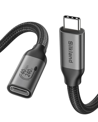Silkland 40Gbps USB4 för Thunderbolt 4 Förlängning 1M, USB C Förlängningskabel 8K@60Hz, Dual 4K@60Hz, 240W PD3.1, USB C Extension Cable för MacBook Pro/Air, iPad Pro, Hub, Dock, SSD, Smartphone