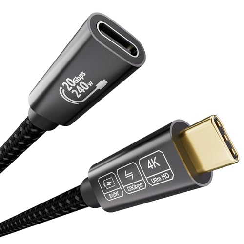 EUDOBEL 20Gbps USB C Förlängning 3m,USB C 3.2 Gen2x2 Förlängningskabel 240W 48V/5A,USB Typ C Förlängning 4K@144Hz 5K@60Hz Hane till Hona för Thunderbolt 4,SSD, iPhone16,iPhone15,Switch,MacBook,VR