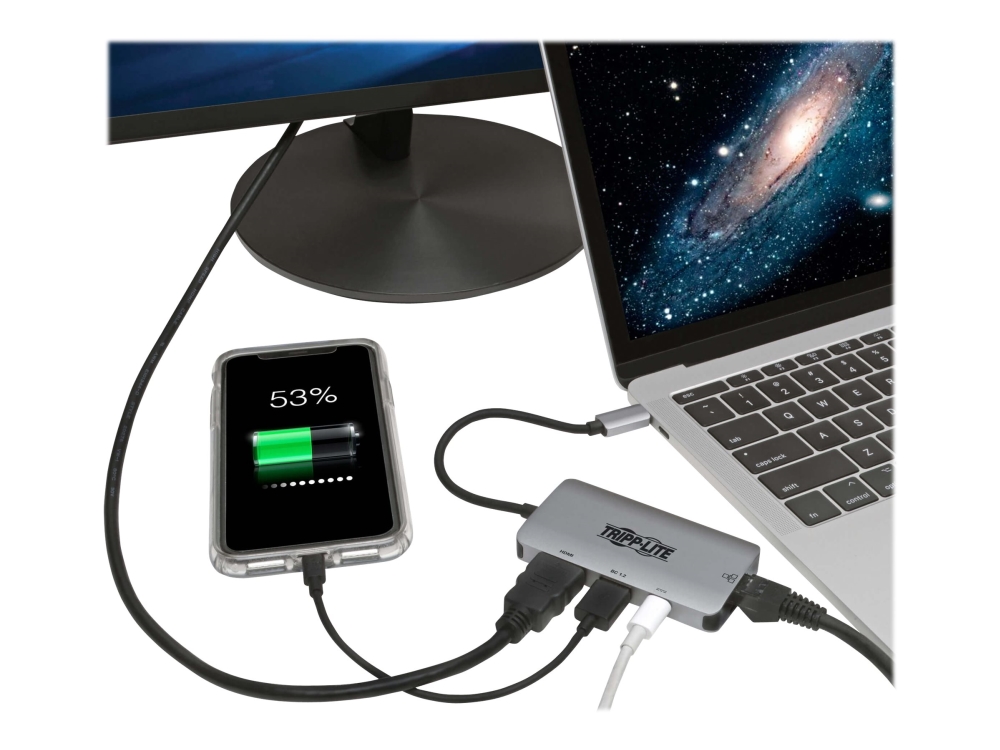 Eaton Tripp Lite Series Usb C Multiport Adapter Converter W/ 4K Hdmi Gigabit Ethernet Port & Usb-A Hub, Thunderbolt 3 Compatible Pd Charging - Dockningsstation - Usb-C 3.1 / Thunderbolt 3 - Hdmi - 1Gbe