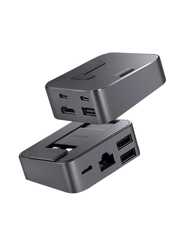 Joyroom Hub S-H121 USB-C stand - USB-A 3.0 / RJ45 / HDMI / USB-C / Thunderbolt for MacBook Pro - gray USB Hub - USB 3.0 - 5 porte - Svart