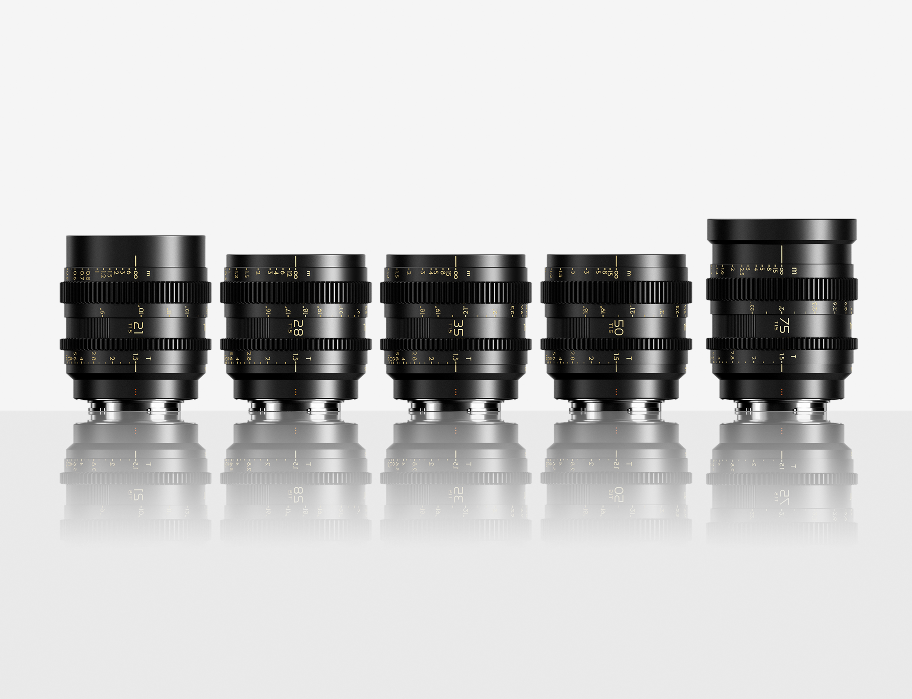 Thypoch Set med 5 Simera-C Cinema Full-Frame Linser 21/28/35/50/75mm T1.5 (M Mount)