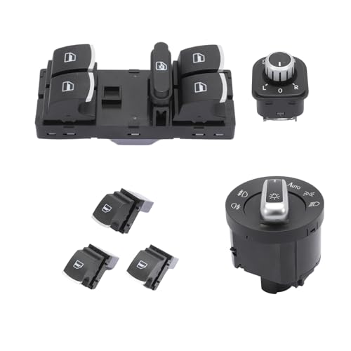 Konuooer 6 stycken fönsterregulator brytare set 5ND959857 5ND941431B 5ND959565B 5ND959855 strålkastare strömbrytare fönster spegel set för Golf 5 6 GTI MK5 MK6 Ti-guan Pass-at Je-tta