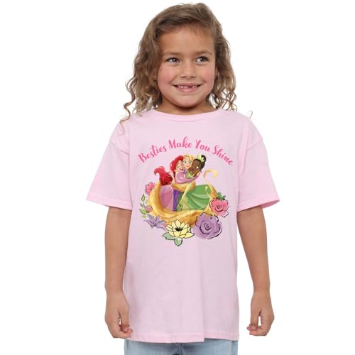 Disney Princess Besties Shine with Ariel, Rapunzel, Tiana Girls T-shirt, rosa, 9-10 år, Rosa, 9-10 År