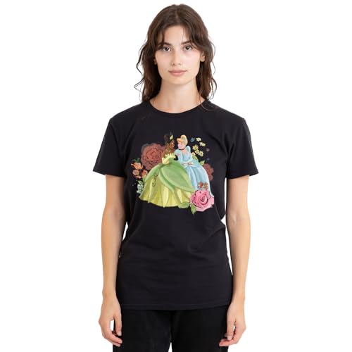 Disney Princess Tiana och Askungen i trädgården dam t-shirt, svart, medium, Svart, M
