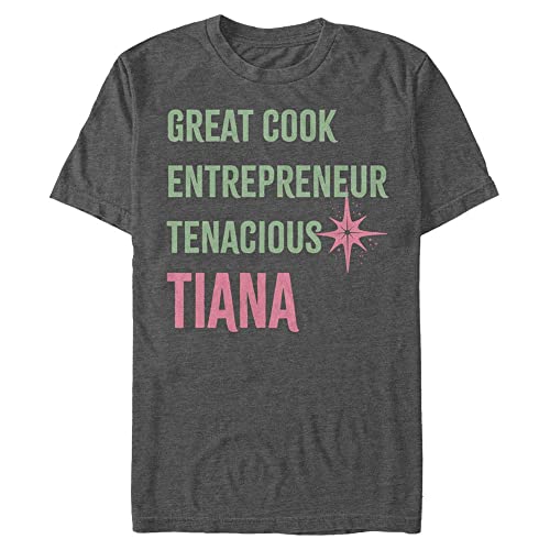 Disney Unisex Princesses-List Tiana Organic Short Sleeve T-shirt, Melange svart, L, Melange svart, L