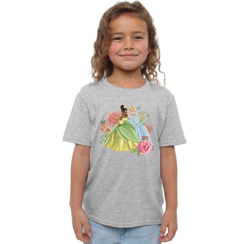 Disney Princess Tiana and Cinderella in The Garden Girls T-shirt, grå, 7–8 år för flickor, Grå, 7-8 år