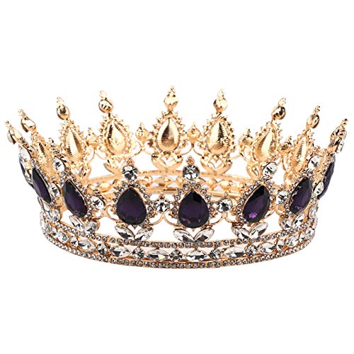Teklemon Barock Tiara Diadem Krona för Damer - Drottning Tiara, Kvinnor Gothic Håraccessoarer Vintage Guld Rund Krona för Flickor - Bröllop/Födelsedags Fest