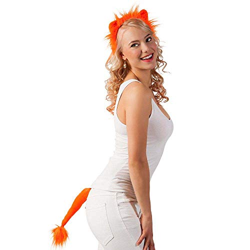 Boland 61776 – Kostymset lejon, 2-delat set, tiara och svans, orange, diadem, öron, tillbehör, komplement till lejonkostym, utklädnad, karneval, temafest, förskola, teater, scen