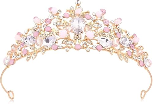 Kristallkrona tiara rosa diadem med strass flicka prinsessa pannband söt bröllop brud hårband festtåg hårprydnad för födelsedagsfest julfest halloween karneval jul kvinnor, En Storlek, Legering, Nej