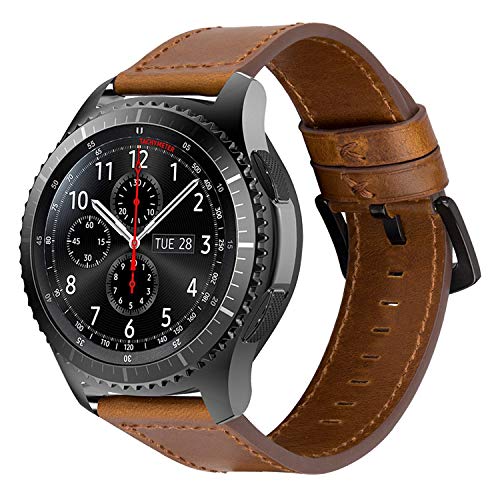 iBazal 22 mm armband klockarmband läder kompatibel med Gear S3/Samsung Galaxy Watch 3 45 mm/Galaxy Watch 46 mm, Huawei Watch GT/Honor Magic/2 Classic, Ticwatch Pro herrklockor 22mm Läder – enkel brun