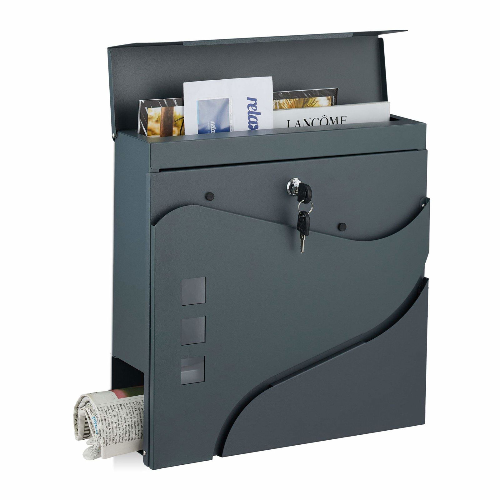 Brevlåda med tidningshållare antracitgrå