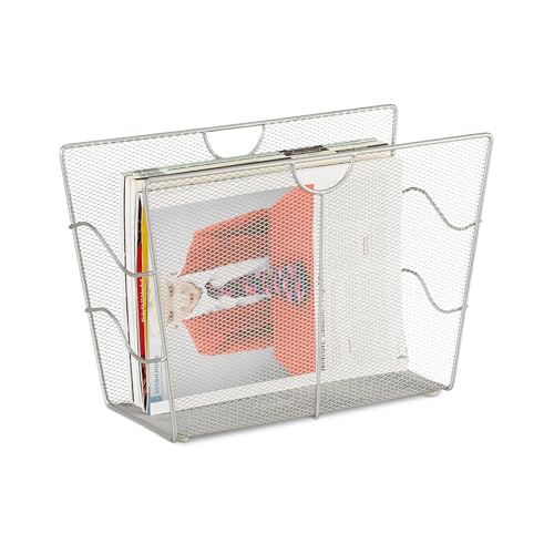 Relaxdays tidningsställ i nät, tidningsfack i metall, fristående ställ, H x B x D 35 x 34 x 18 cm, silver
