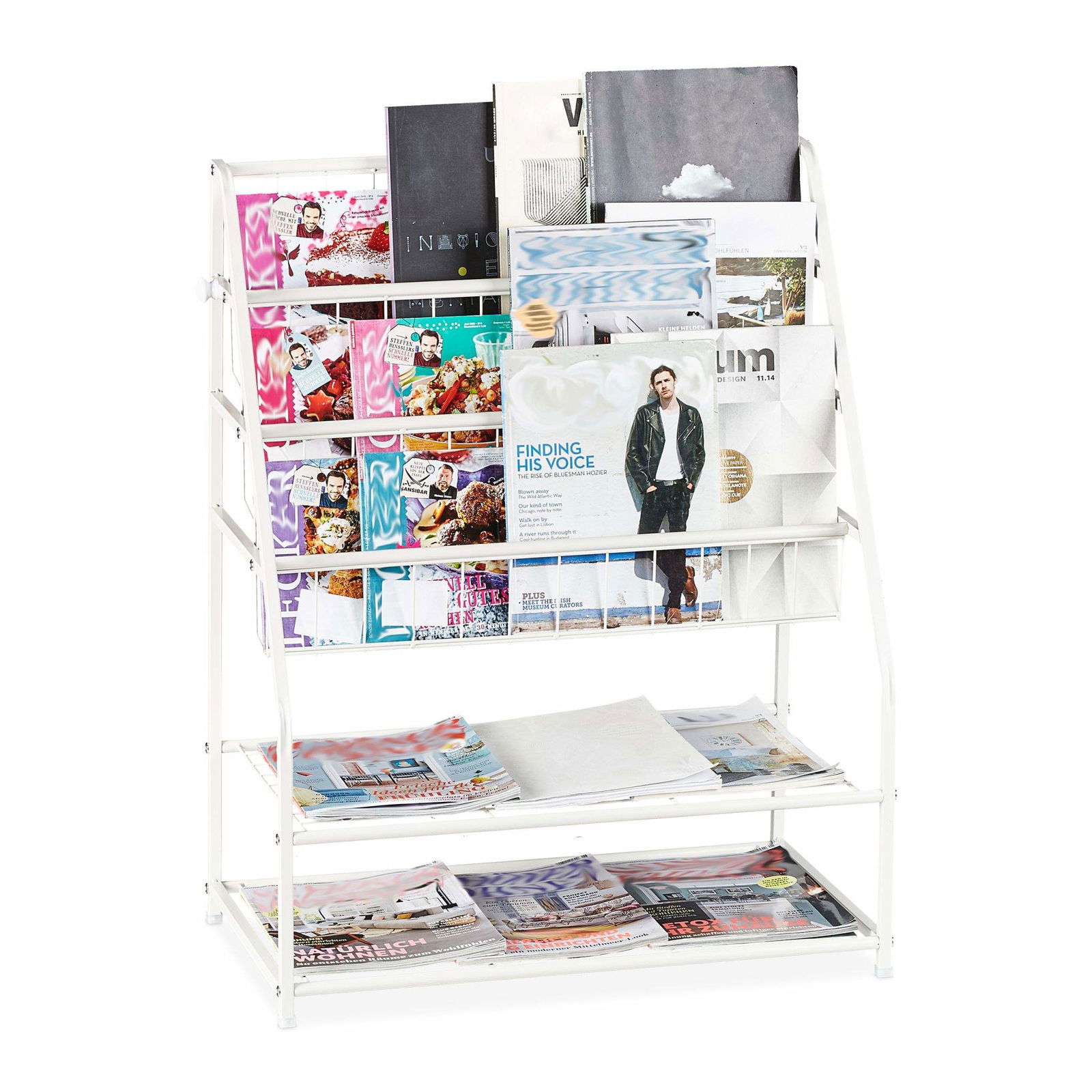 Tidningsställ i metall med 4 fack