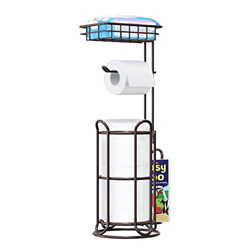 Svart fristående toalettpappershållare med hylla – pappersrulle dispenser och tidningsställ – passar Mega Rolls, telefon och våtservetter
