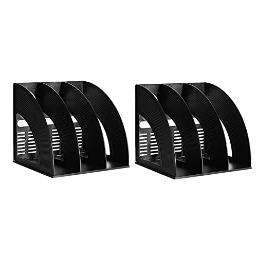 Marte Vanci Skrivbordsfilorganisatör, robust tidskriftsfilhållare skrivbord 3 fack vertikala hållare arkivbok avdelare dokumentskåp hylla tidningsställ display förvaringsarrangör svart 2 st