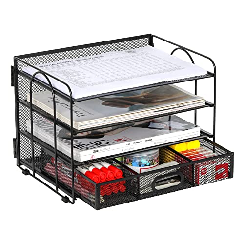 EasyPAG 4 nivåer skrivbord A4 nät arkiveringsbricka kontor skrivbord prydlig arkivhållare papper organiserare tidningsställ med brevpapperslåda, svart
