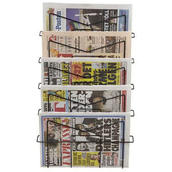 LM 42 tidningsställ Arrow för vägg, svart ståltråd i finsk design för organisering av tidningar och brev